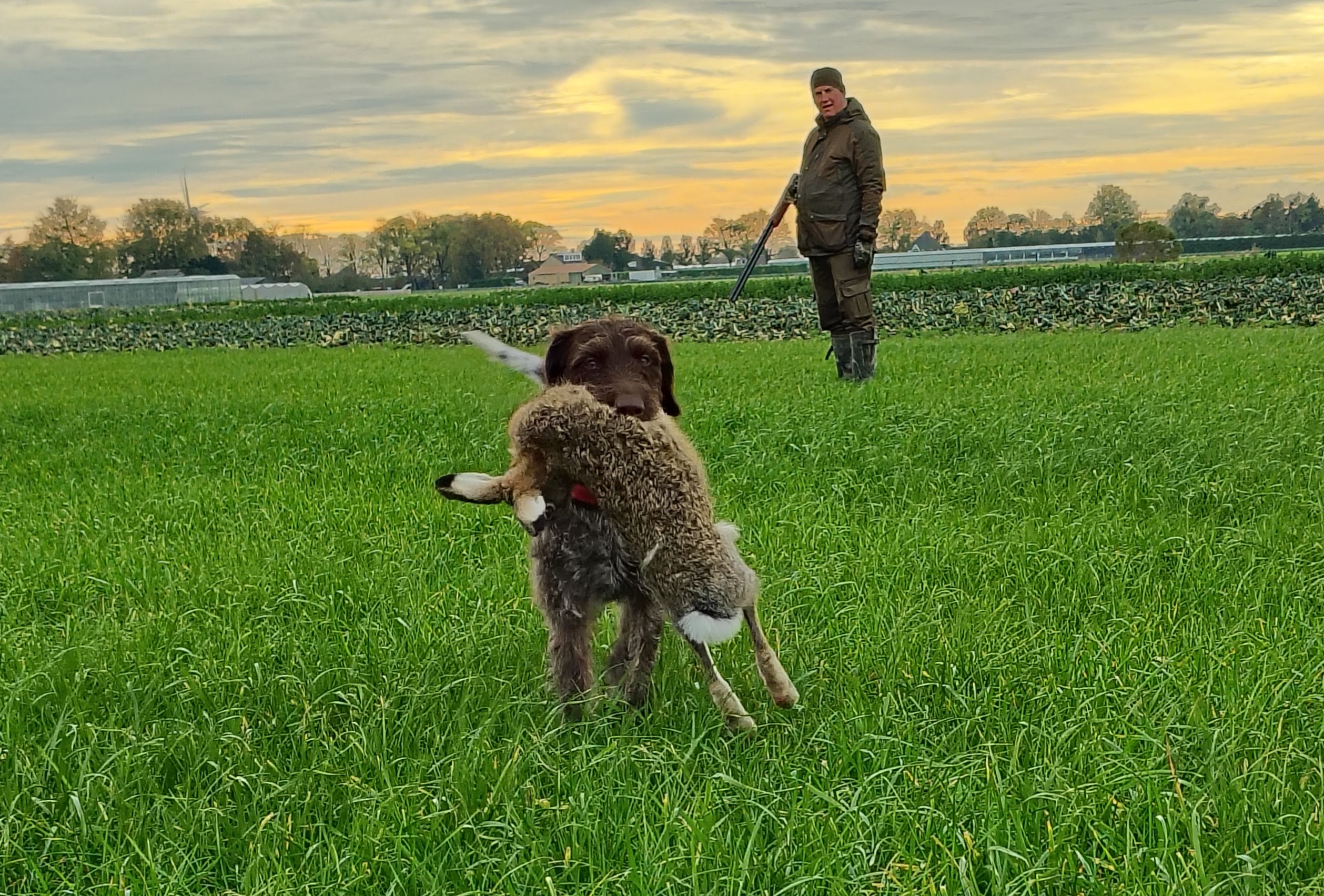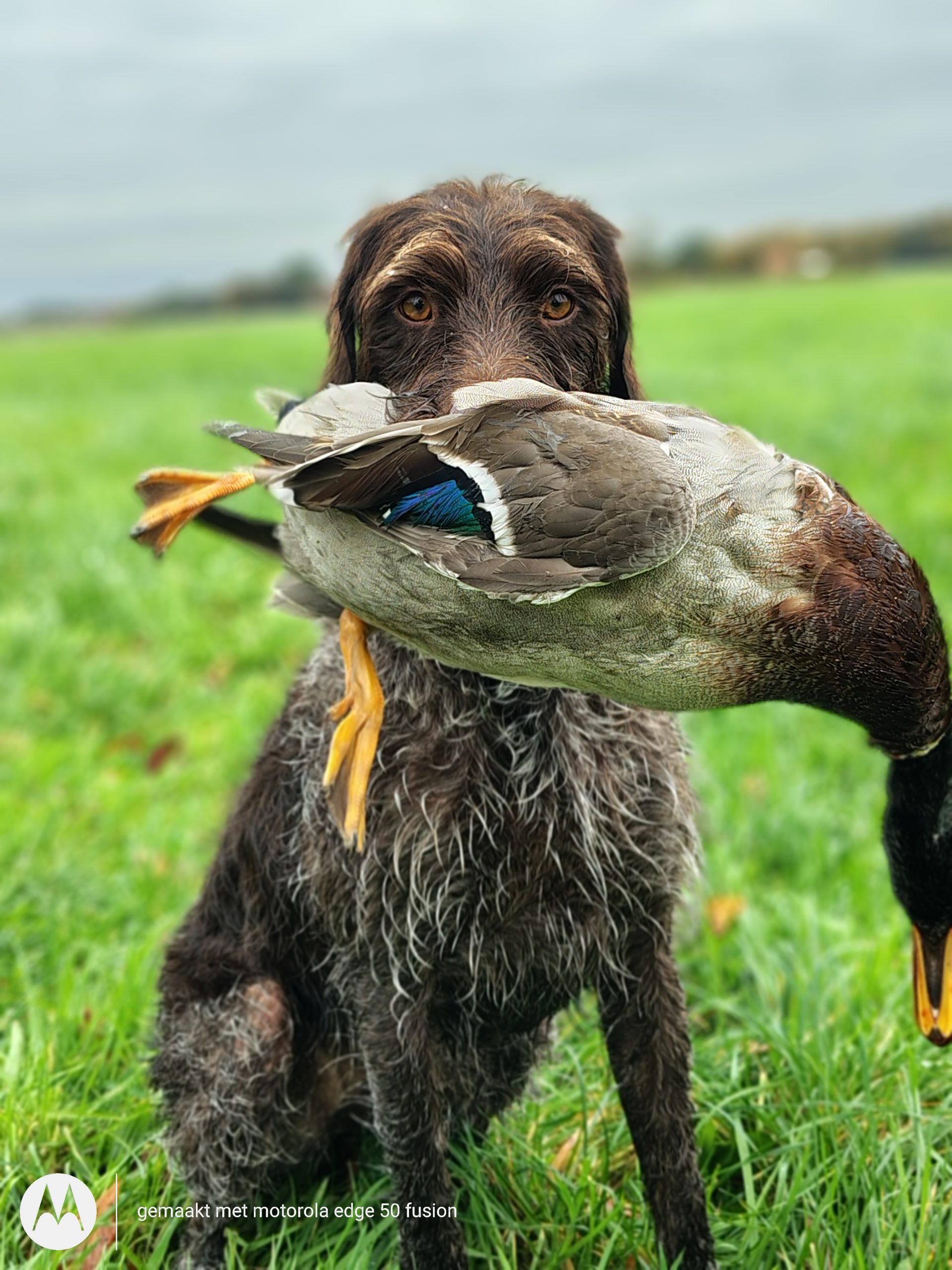 In het jachtseizoen van 2025 heeft Haika laten zien een volwaardige jachthond te zijn. Doorgaans goed in de hand, af en toe een stout momentje, maar dat hoort er bij. En een volhardende wildvinder tijdens het nazoeken op verloren eend, fazant of haas.